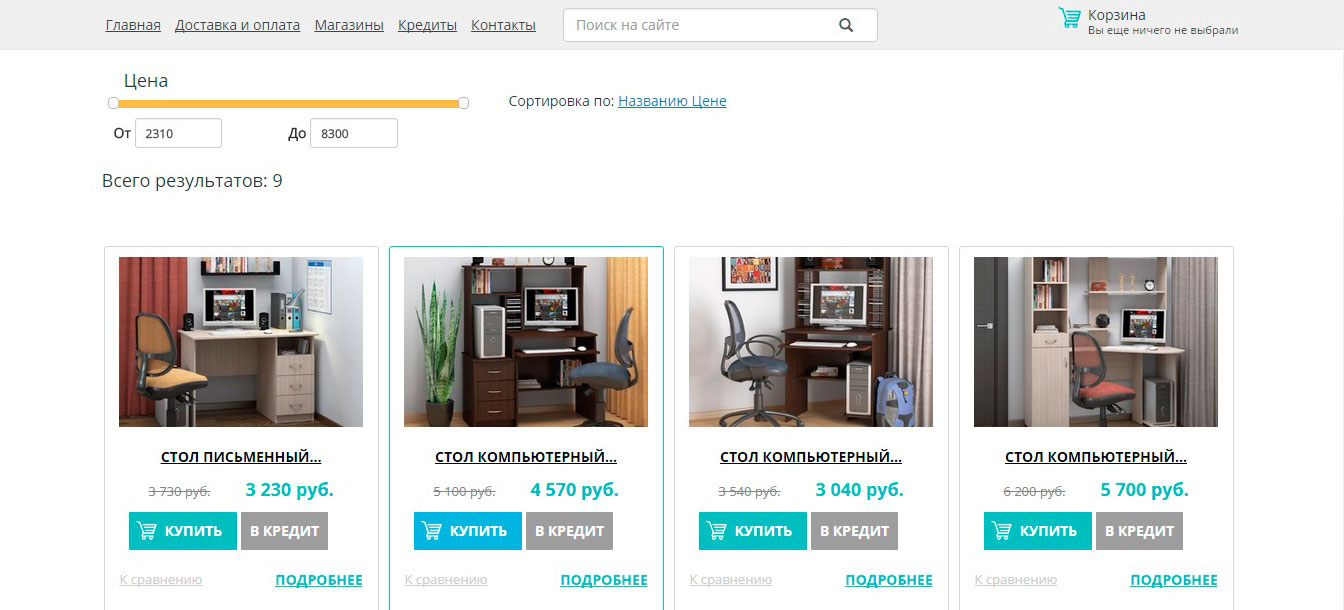 В выбранной категории найти интересующий Вас товар и ознакомиться со всеми его характеристиками: - стоимость; - габаритные размеры; - расцветка; - и т.д.