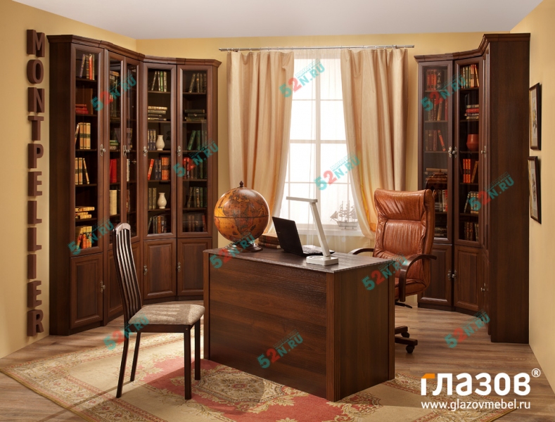 Классическая библиотека MONTPELLIER в новом декоре Орех Шоколадный выглядит стильно и презентабельно. Тёмный благородный декор мебели поддерживает спокойную рабочую обстановку в кабинете. Шкафы надежно крепятся к стене, а тонированные стекла защитят книги от прямых солнечных лучей и пыли. Классические канелюры выделены в самостоятельный модуль — Добор с канелюрами и докупаются отдельно по Вашему желанию. РАЗМЕРЫ УКАЗАНЫ БЕЗ УЧЕТА КАРНИЗА. ЦЕНА УКАЗАНА БЕЗ УЧЕТА КАРНИЗА.