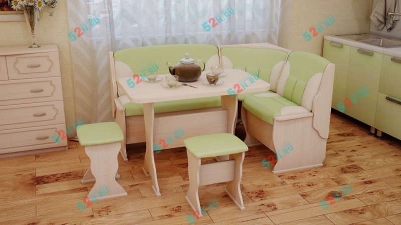 Габаритные размеры угловая скамья: 1500х1100х840 мм стол: 800х800х750 табурет: 380х300х450 Столешница «Термопластик»