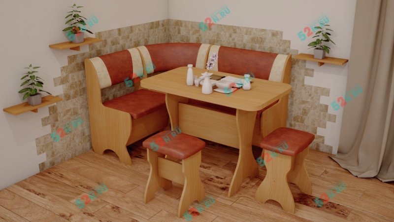 угловая скамья: 1350х1000х840 мм