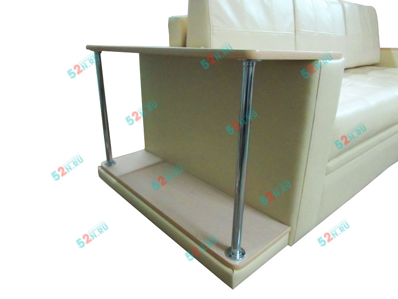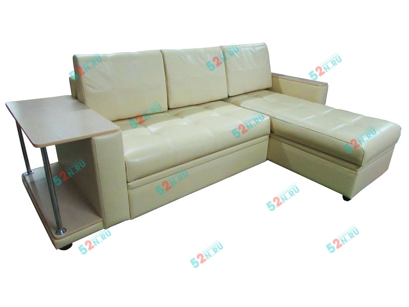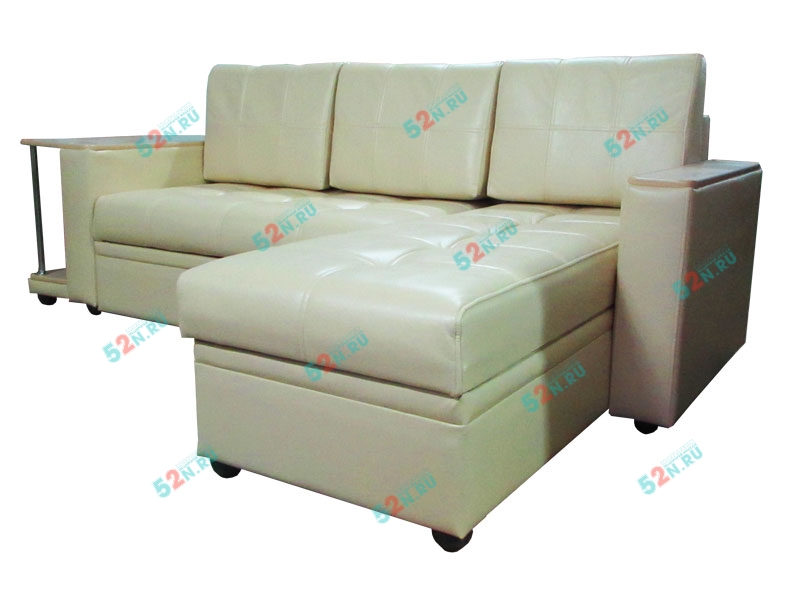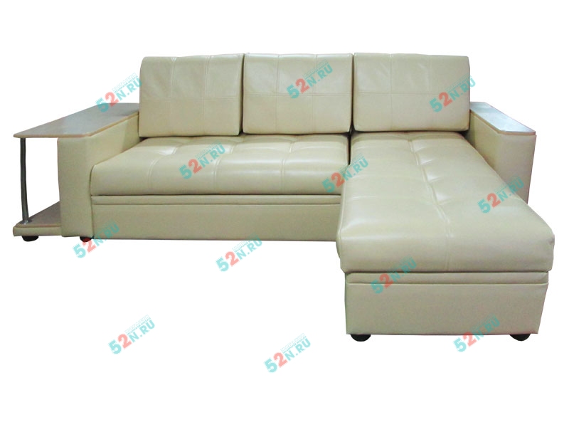 4. Мы производим компактный и удобный угловой диван «Атланта». Подлокотники сверху декорированы накладками с имитацией под дерево. Диван комплектуется съемными подушками из формованного пенополеуретана. Диван может комплектоваться встроенным в подлокотник столиком из декорированного под дерево материала ЛДСП.