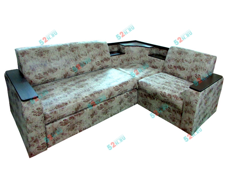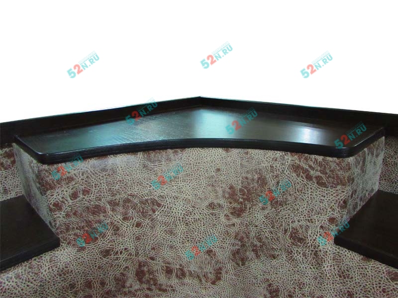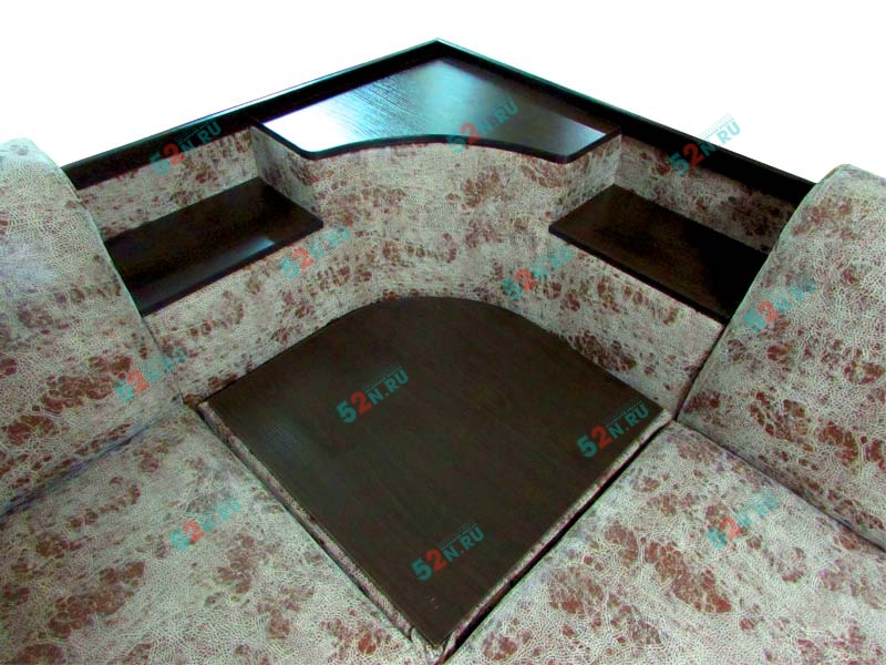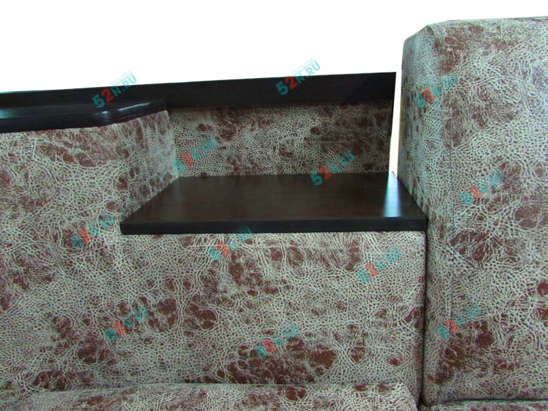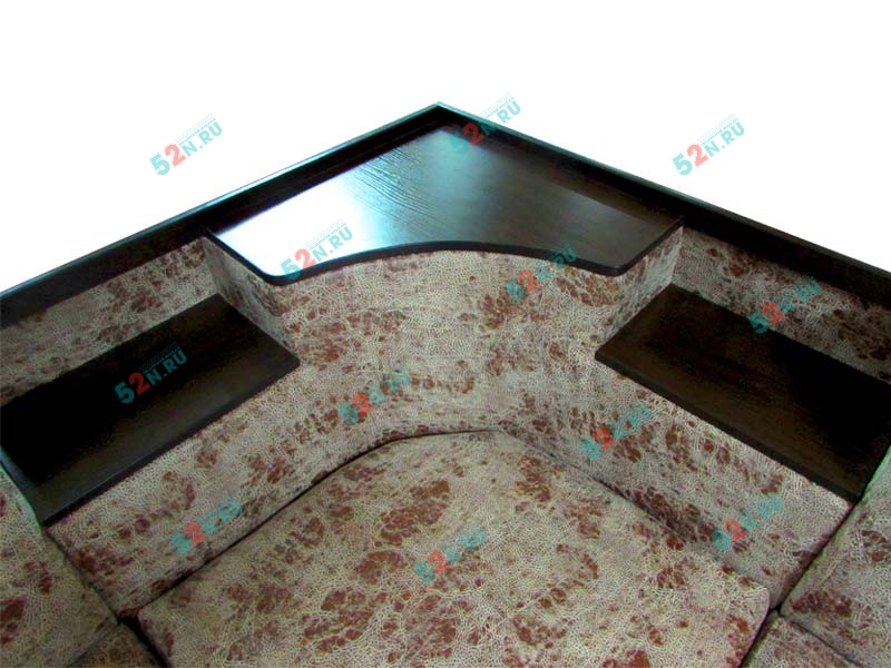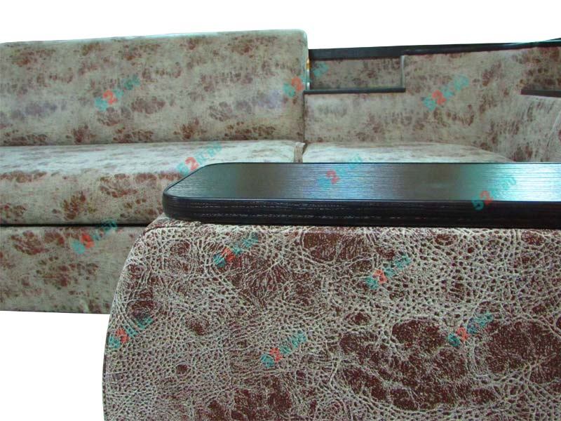 4. Мы предлагаем строгий по дизайну угловой диван «Мелодия комфорта». Подлокотники сверху декорированы вставками под дерево. Диван может комплектоваться различными подлокотниками: по дизайну, ширине (узкими или широкими), длине (увеличенными или короткими) и с декоративными накладками, и без них. В угловом секторе предусмотрен оригинальный Бар из декоративного материала ЛДСП.