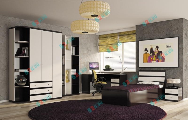 Молодежная система отвечающая всем требованиям экологии и качества. Изготавливается из австрийских материалов. Большое количество элементов поможет набрать мебель как в большое помещение так и в самое маленькое. Как у всей нашей мебели у данной серии есть свои особенности: кровать с закругленными торцами, оригинальный торцевой стеллаж и пенал, большая витрина, необычный большой стеллаж