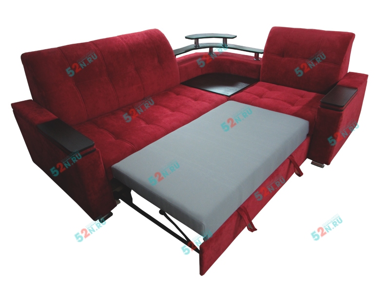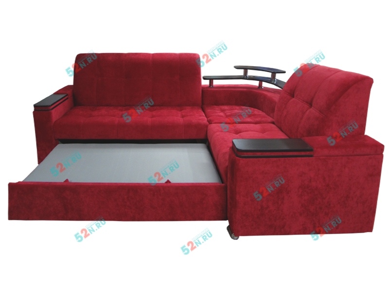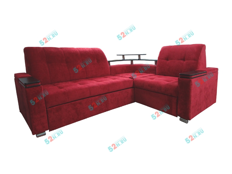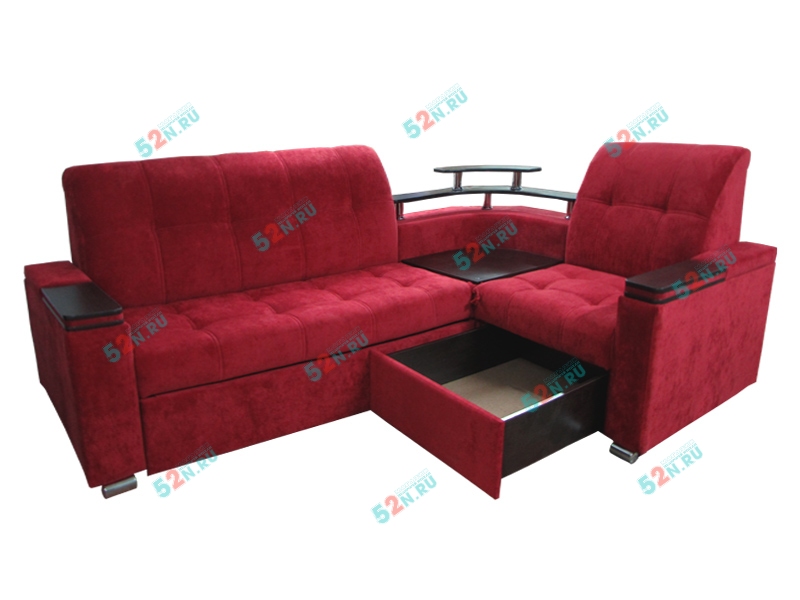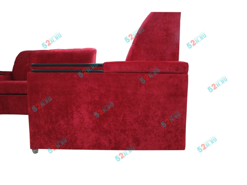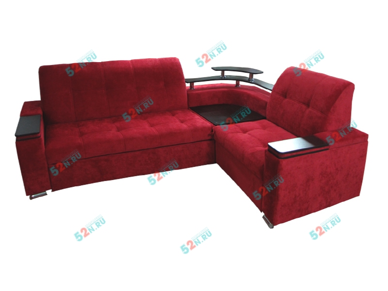 4. Мы предлагаем удачный по дизайну угловой диван «Токио». Он очень интересен своими широкими подлокотниками, ширина которых 20 см. Сверху они декорированы оригинальными вставками под дерево, в подлокотниках встроены удобные полки. Диван может комплектоваться подлокотниками, внутри которых устроены огромные ниши для различных предметов. В угловом секторе сиденье «перевертыш», с одной стороны сектора - столик из декоративного материала имитирующее натуральное дерево ЛДСП, с противоположное стороны - мягкое сиденье. Так же в угловом секторе предусмотрен оригинальный Бар из декоративного материала ЛДСП. Диван может комплектоваться двумя видами баров, большим и малым (зависит от комплектации)