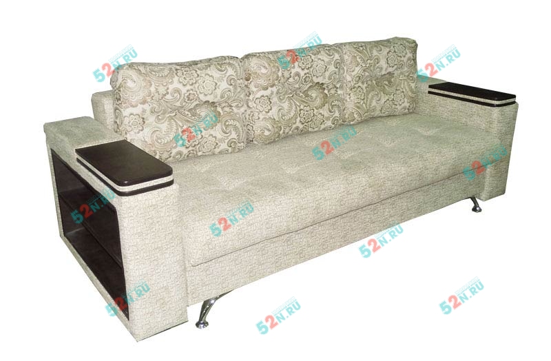 4. Мы предлагаем удачный по дизайну диван «Сусанна 7» Он очень интересен своими широкими подлокотниками, ширина которых 20 см. Сверху они декорированы оригинальными вставками под дерево, в подлокотниках встроены удобные полки. Диван может комплектоваться подлокотниками, внутри которых устроены огромные ниши для различных предметов быта.
