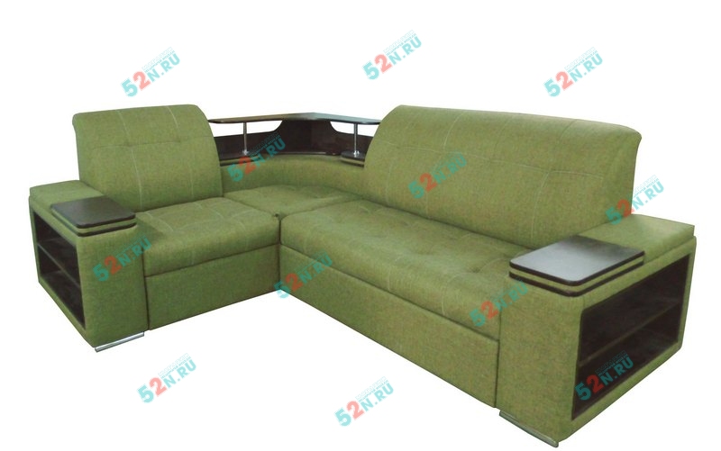 4. Мы предлагаем удачный по дизайну угловой диван «Токио». Он очень интересен своими широкими подлокотниками, ширина которых 20 см. Сверху они декорированы оригинальными вставками под дерево, в подлокотниках встроены удобные полки. Диван может комплектоваться подлокотниками, внутри которых устроены огромные ниши для различных предметов. В угловом секторе сиденье «перевертыш», с одной стороны сектора - столик из декоративного материала имитирующее натуральное дерево ЛДСП, с противоположное стороны - мягкое сиденье. Так же в угловом секторе предусмотрен оригинальный Бар из декоративного материала ЛДСП. Диван может комплектоваться двумя видами баров, большим и малым (зависит от комплектации)
