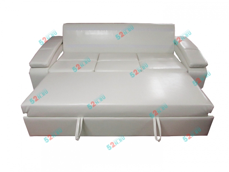 Данный диван комплектуется выкатным механизмом «Венеция». Красивые подлокотники инхрустированы полками из декоративного материала ЛДСП под цвет дерева, светлых и темных тонов.