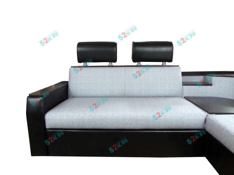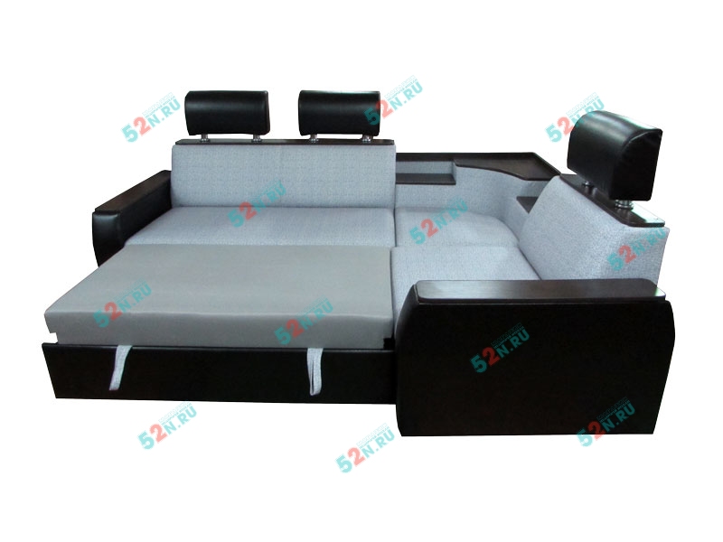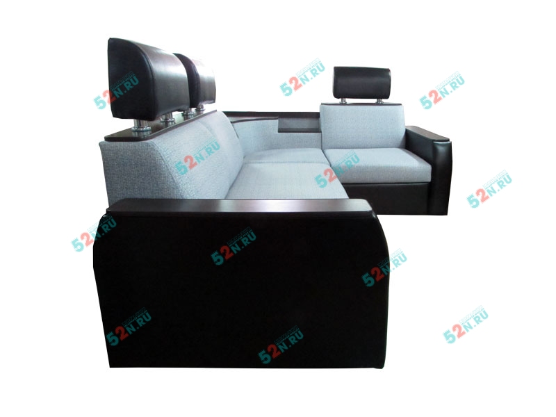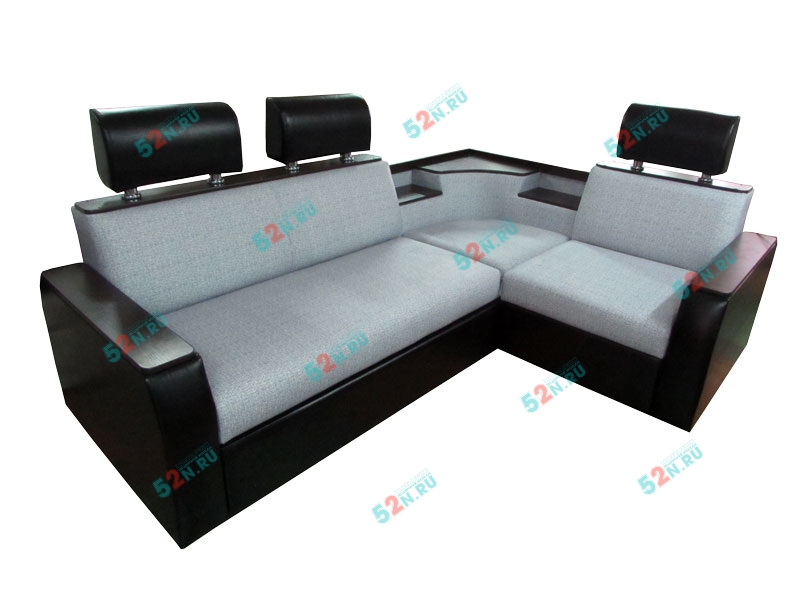 4. Мы предлагаем строгий по дизайну угловой диван «Мелодия комфорта». Подлокотники сверху декорированы вставками под дерево. Диван может комплектоваться различными подлокотниками: по дизайну, ширине (узкими или широкими), длине (увеличенными или короткими) и с декоративными накладками, и без них. В угловом секторе предусмотрен оригинальный Бар из декоративного материала ЛДСП.