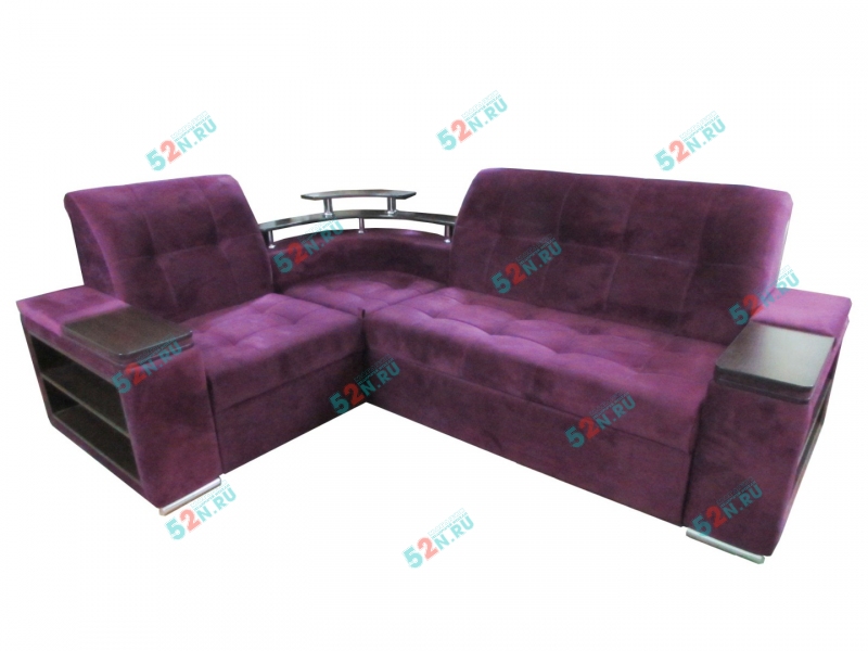 4. Мы предлагаем удачный по дизайну угловой диван «Токио». Он очень интересен своими широкими подлокотниками, ширина которых 20 см. Сверху они декорированы оригинальными вставками под дерево, в подлокотниках встроены удобные полки. Диван может комплектоваться подлокотниками, внутри которых устроены огромные ниши для различных предметов. В угловом секторе сиденье «перевертыш», с одной стороны сектора - столик из декоративного материала имитирующее натуральное дерево ЛДСП, с противоположное стороны - мягкое сиденье. Так же в угловом секторе предусмотрен оригинальный Бар из декоративного материала ЛДСП. Диван может комплектоваться двумя видами баров, большим и малым (зависит от комплектации)