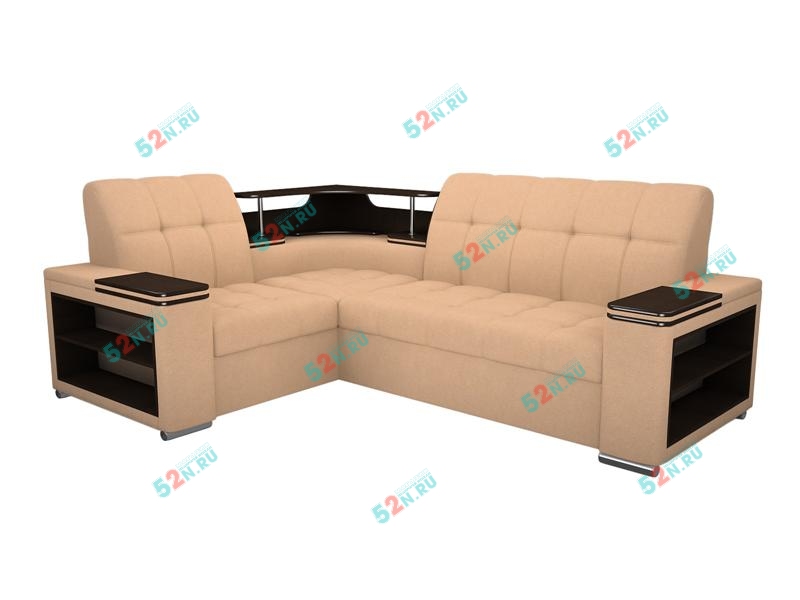 4. Мы предлагаем удачный по дизайну угловой диван «Токио». Он очень интересен своими широкими подлокотниками, ширина которых 20 см. Сверху они декорированы оригинальными вставками под дерево, в подлокотниках встроены удобные полки. Диван может комплектоваться подлокотниками, внутри которых устроены огромные ниши для различных предметов. В угловом секторе сиденье «перевертыш», с одной стороны сектора - столик из декоративного материала имитирующее натуральное дерево ЛДСП, с противоположное стороны - мягкое сиденье. Так же в угловом секторе предусмотрен оригинальный Бар из декоративного материала ЛДСП. Диван может комплектоваться двумя видами баров, большим и малым (зависит от комплектации)