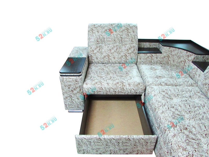 5. В составе дивана предусмотрены 2 бельевых ящика. Выдвижной ящик под кресельной частью дивана и большой ящик в угловом секторе.