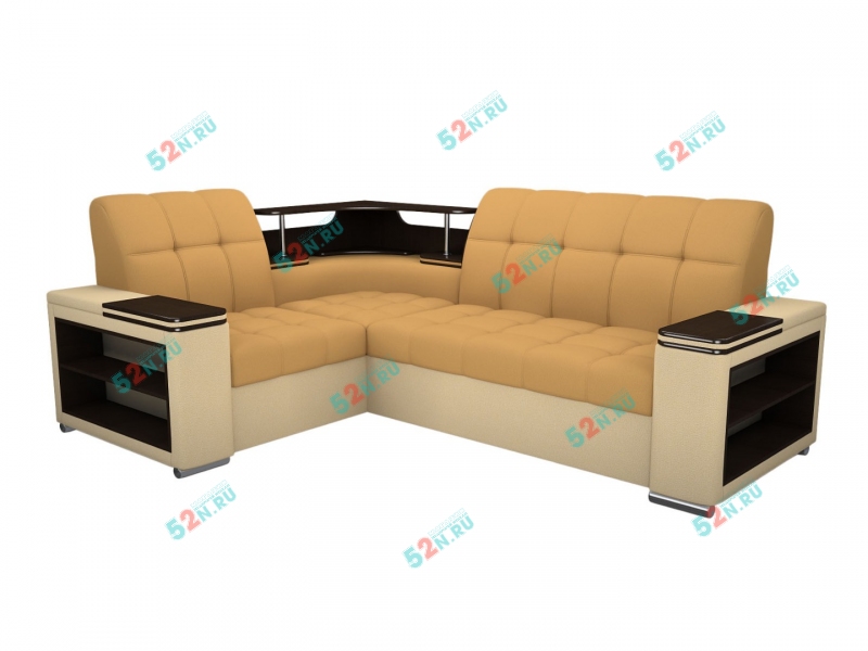 4. Мы предлагаем удачный по дизайну угловой диван «Токио». Он очень интересен своими широкими подлокотниками, ширина которых 20 см. Сверху они декорированы оригинальными вставками под дерево, в подлокотниках встроены удобные полки. Диван может комплектоваться подлокотниками, внутри которых устроены огромные ниши для различных предметов. В угловом секторе сиденье «перевертыш», с одной стороны сектора - столик из декоративного материала имитирующее натуральное дерево ЛДСП, с противоположное стороны - мягкое сиденье. Так же в угловом секторе предусмотрен оригинальный Бар из декоративного материала ЛДСП. Диван может комплектоваться двумя видами баров, большим и малым (зависит от комплектации)